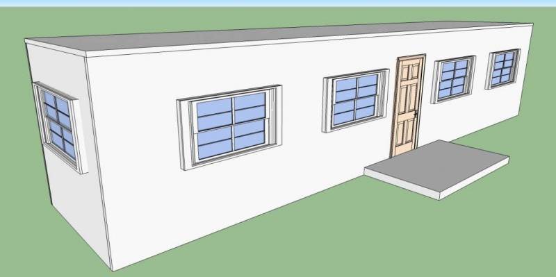 Ovo je kuća sa jednom spavaćom sobom i jednim kupatilom, ali može se dodati još jedna spavaća soba vrlo jeftino. Cena za izgradnju ove kuće bila bi oko $10000.
